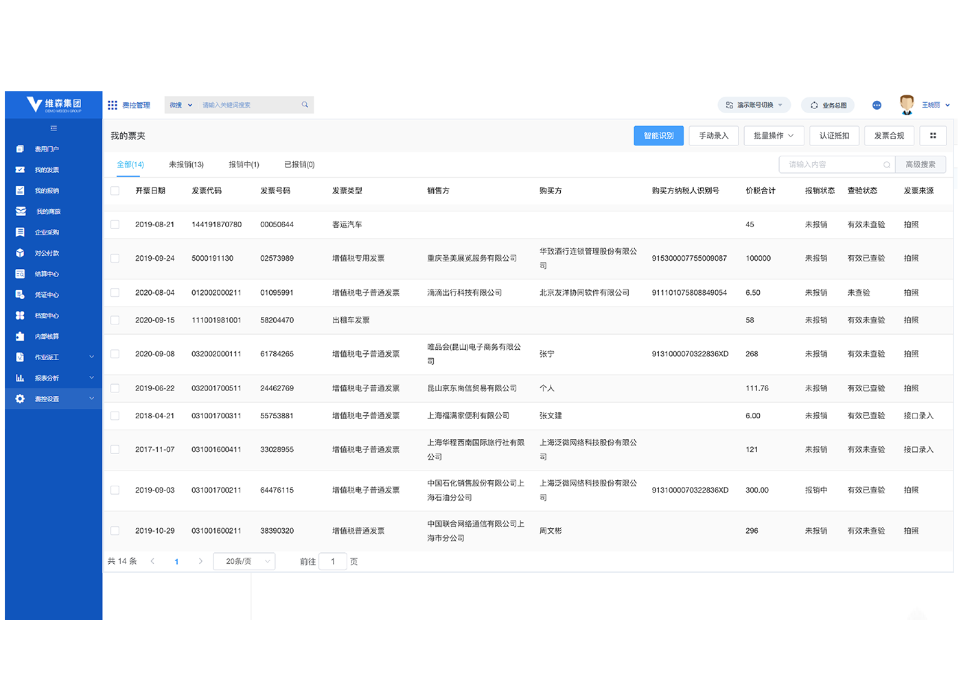 - 通过发票验真、查重、连号校对、敏感词校验、黑白名单自定义设置等功能,灵活满足企业内控合规要求。